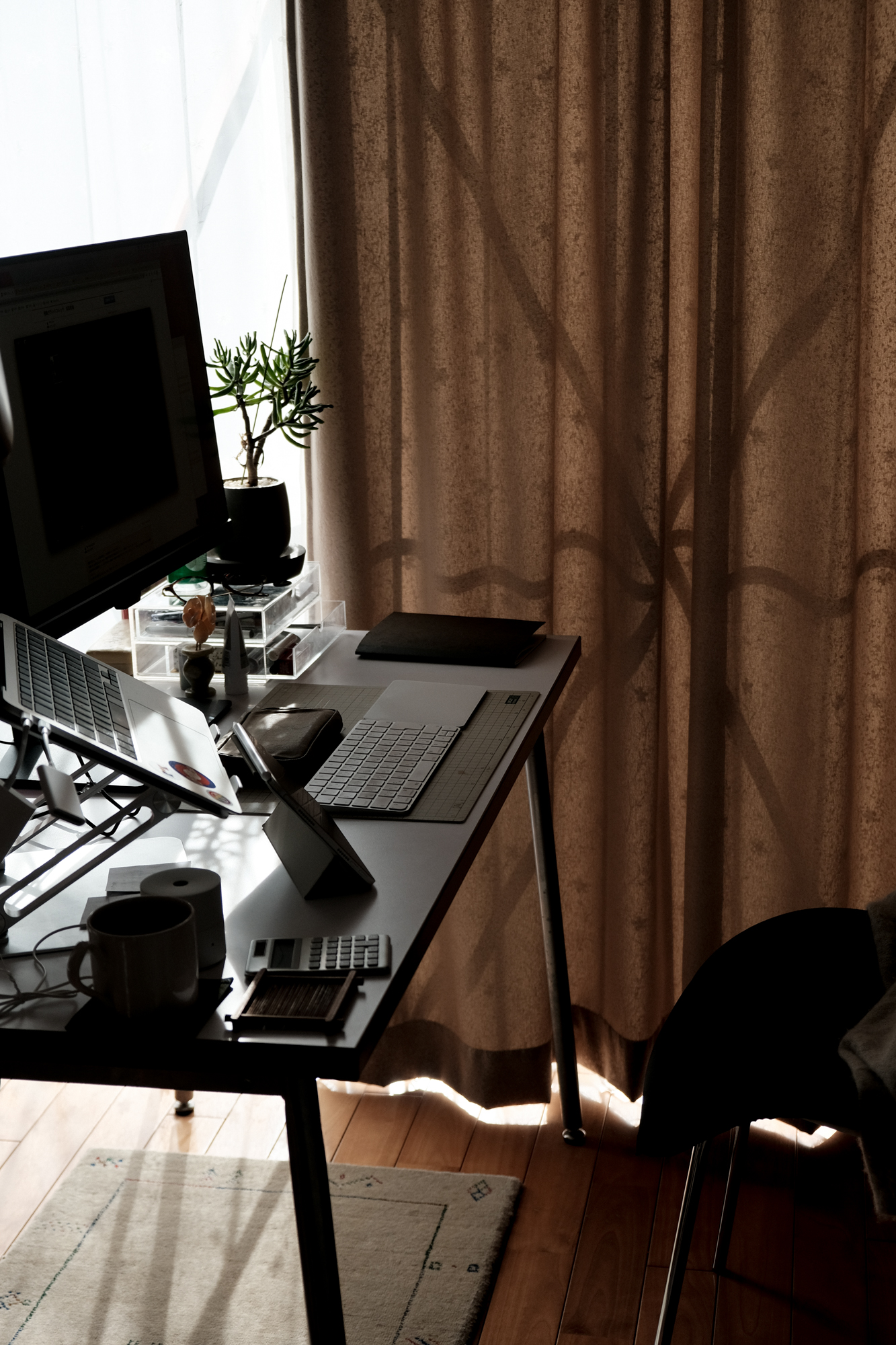 1年目のデスク。日々ここでPCと睨めっこしています。制作環境もアップデートしていきたい。