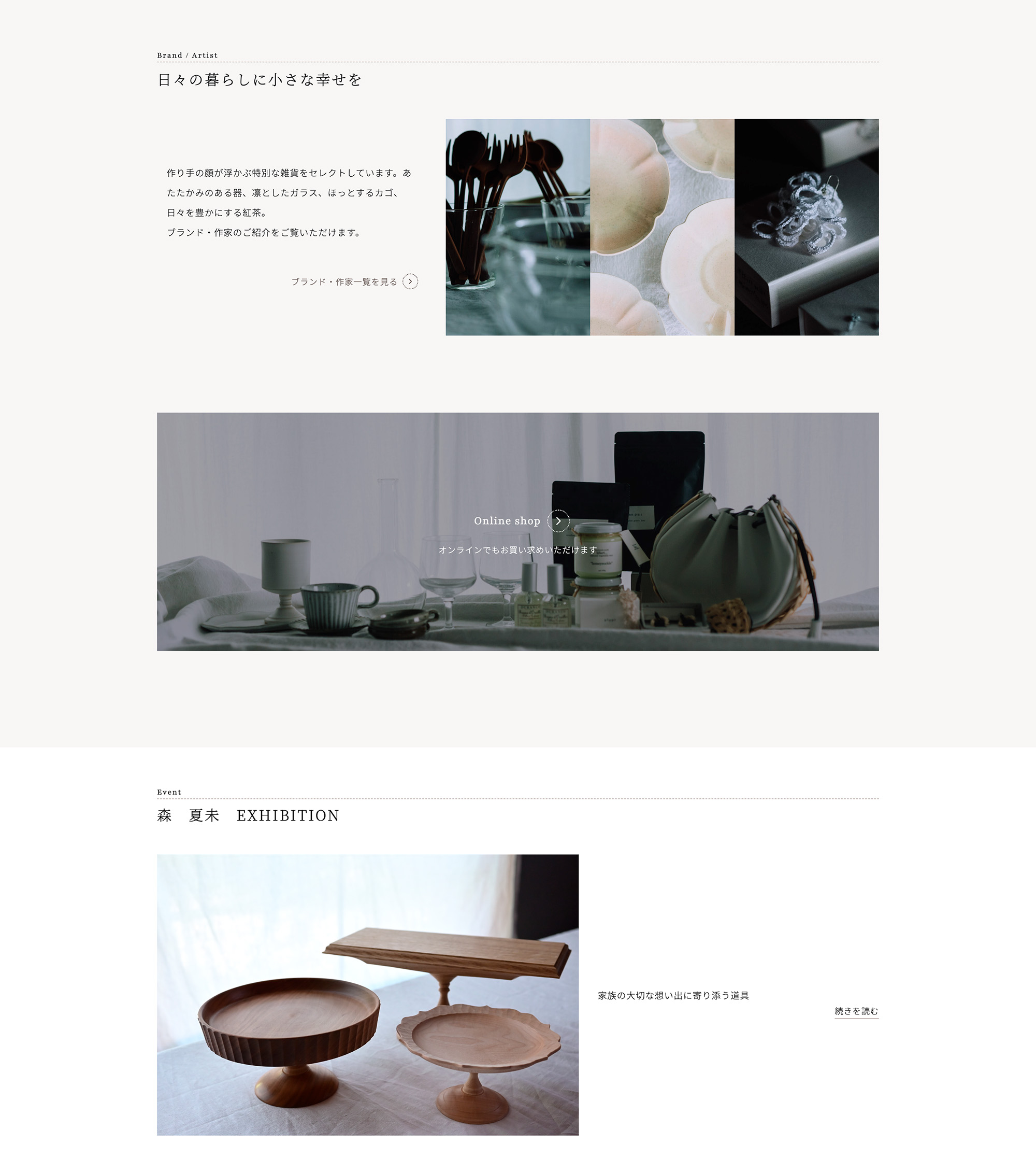 お知らせやイベントの情報の投稿に加え、作家紹介のページも作成し、Pour toiさんを通して作家さんのことも知っていただけるサイトになっています。